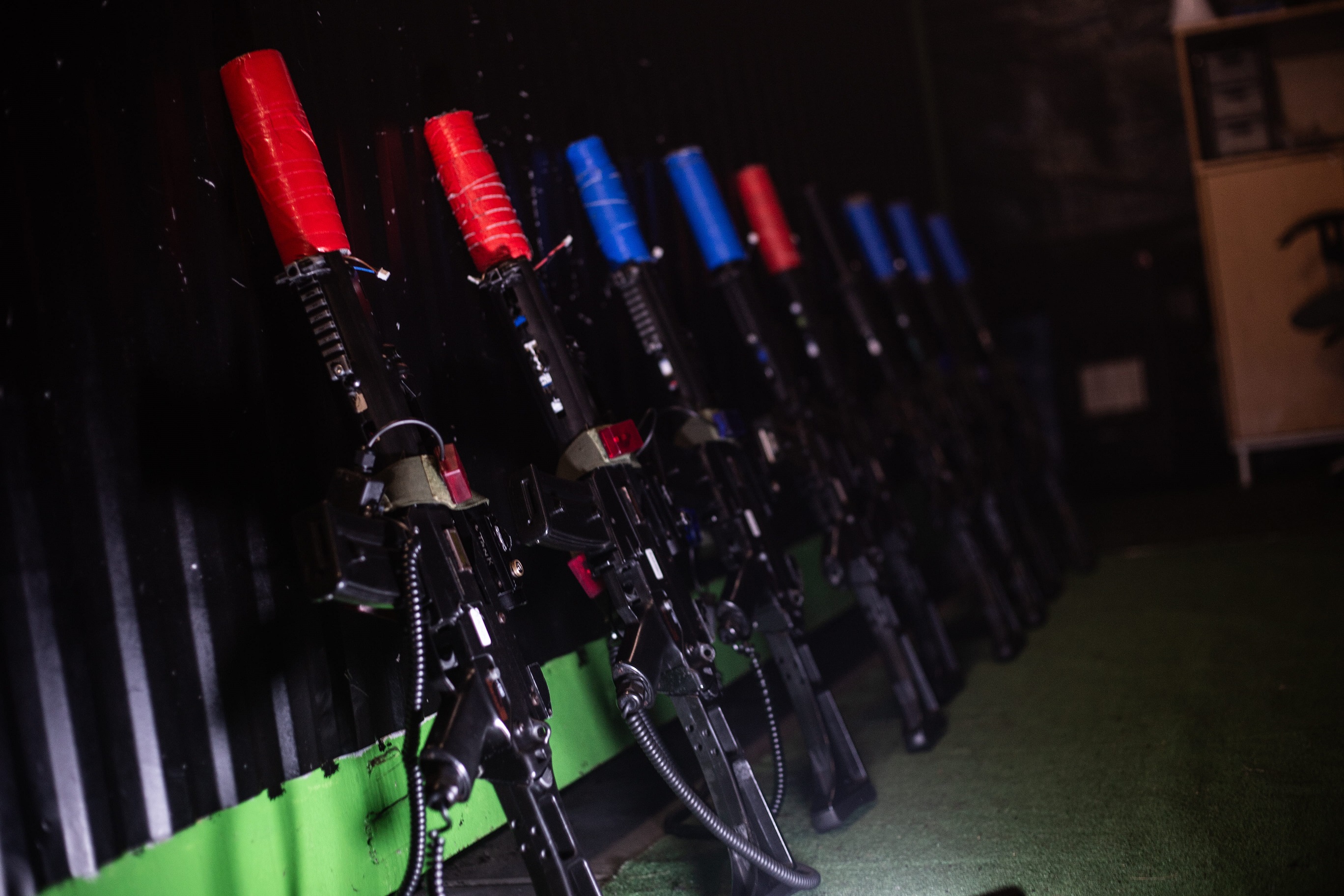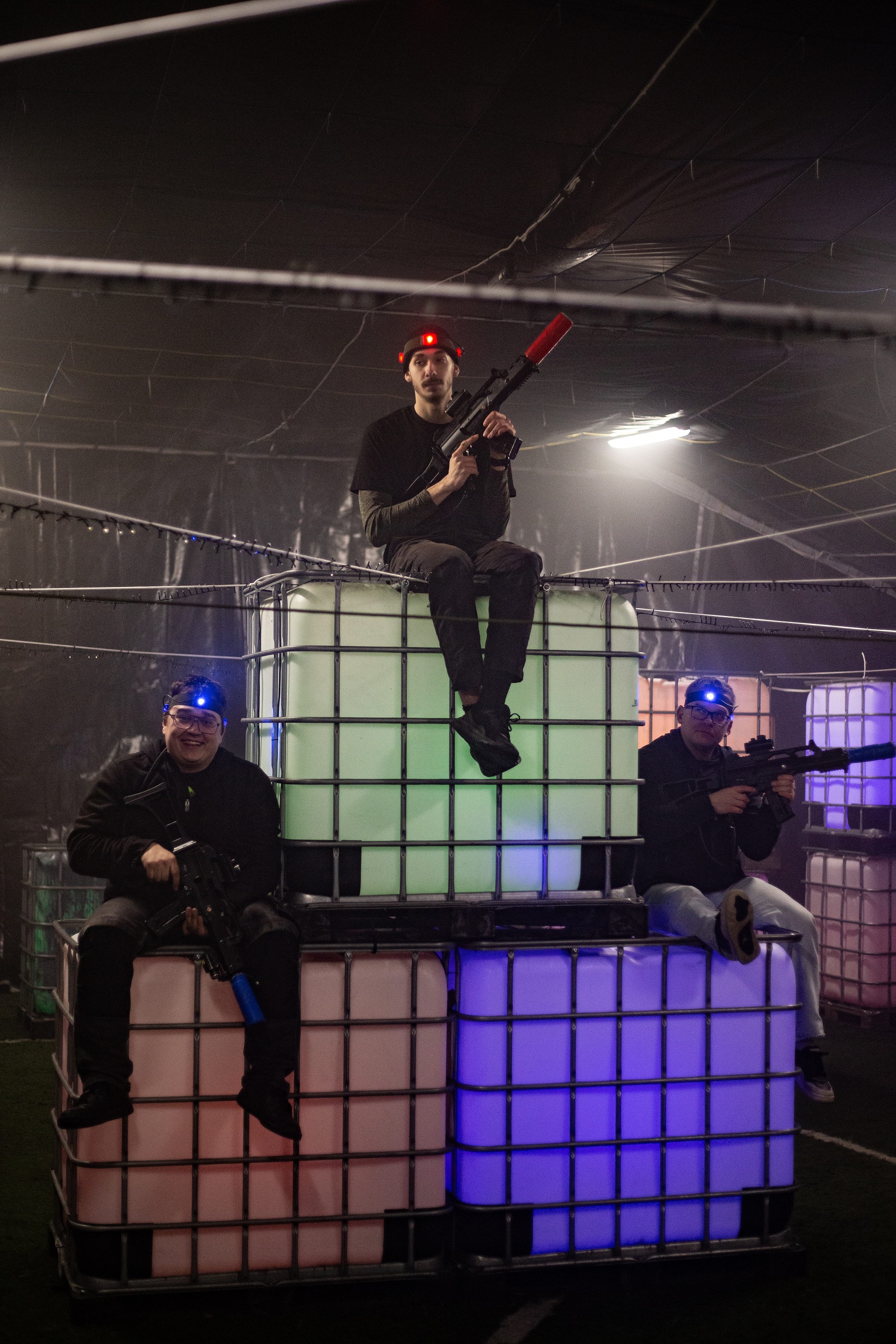 dmuchane przeszkody, światła UV i dymarka - Realistyczny surowy klimat fabryki